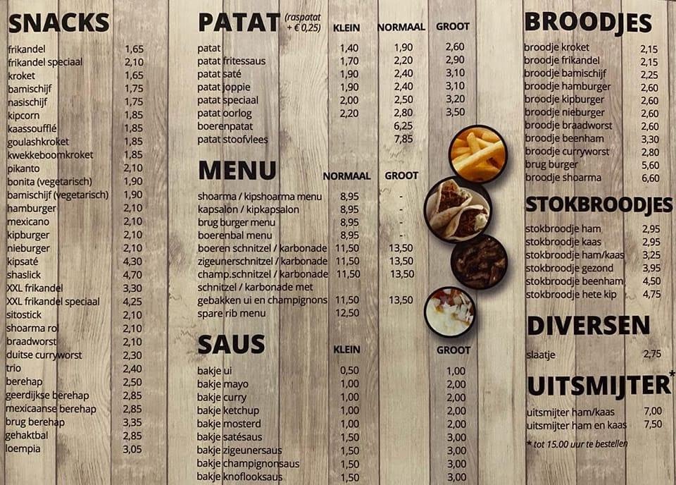 - Snacks and Fast Food: Typical fast food choices such as fries (patat) and specialty items like the Kapsalon. Various snacks including traditional Dutch fast food options are available for quick orders and casual dining.